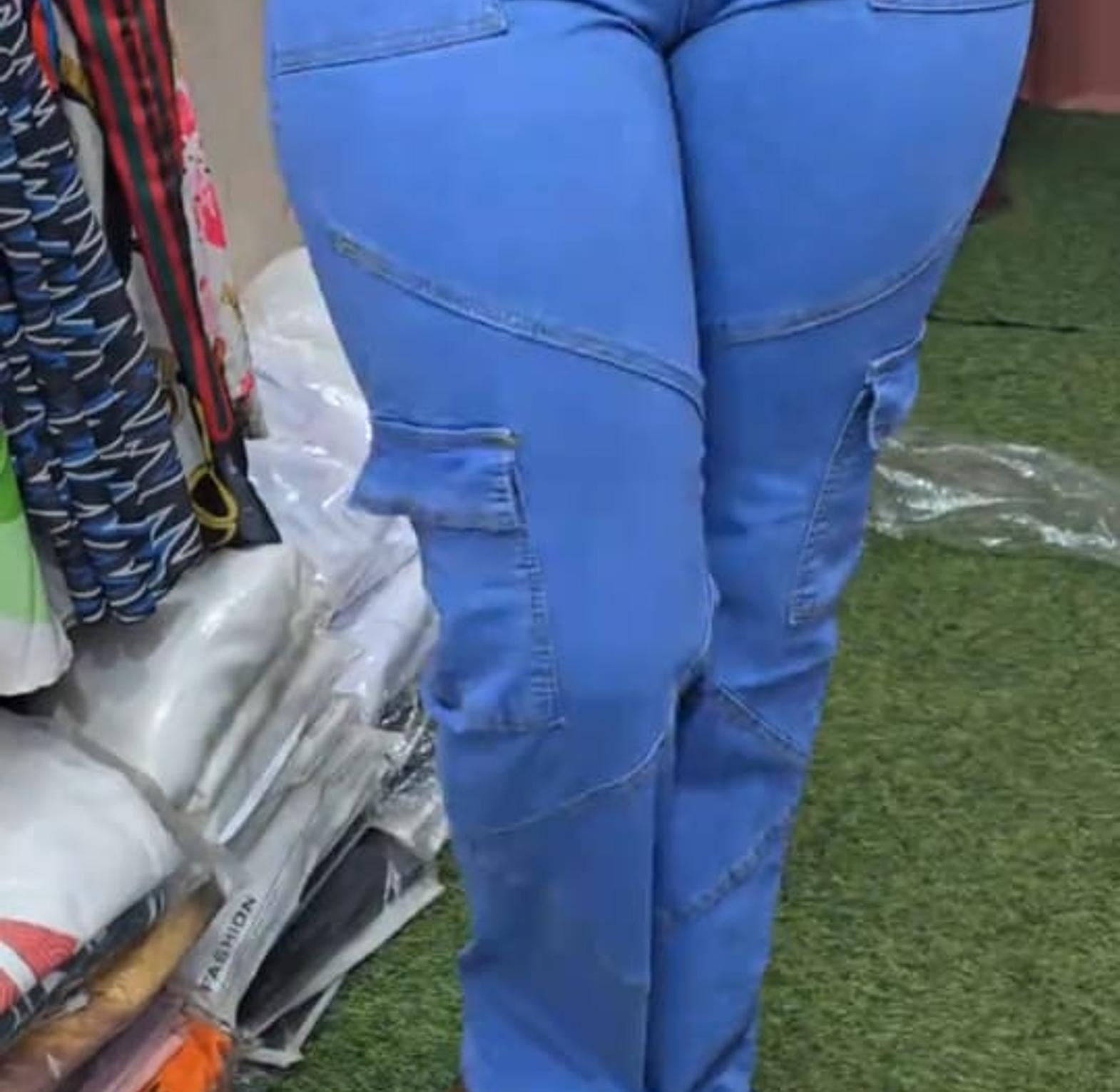 Ladies denim cargo pants
